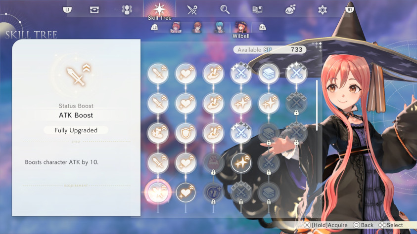 А вот возвращение к пошаговым сражениям однозначно пошло на пользу. В Atelier Yumia заигрывания с рилтаймом добавило хаоса в драках, а в новой серии всё более привычно. При этом есть вариант вовремя поставить блок, чтобы снизить урон, — динамика тоже присутствует. Кроме того, можно проводить совместные и объединённые атаки, расставлять бойцов по линиям, прерывать атаки и вводить союзников для дополнительных атак, а также играть со шкалой действий, перемещая на ней врагов и своих подопечных. Плюс, как всегда, важно учитывать стихийные уязвимости. И конечно, мы по знакомой схеме зарабатываем свободный опыт, который в любой момент можно вкладывать в прокачку самых разных пассивных навыков у выбранного персонажа.