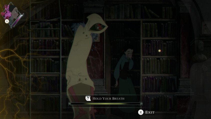 Существенно разнообразит игровой процесс то, что Лана может превращаться в кролика. Эта особенность позволяет ей пролазить в недоступные ранее места и двигаться быстрее. Правда, бегать тут себе дороже: повсюду расставлена хрупкая посуда, которая тут же разбивается и выдаёт твоё местоположение преследователю. В какой-то момент я просто посбивала все бутылки, пересидела рысканья злодея и потом спокойно носилась по локации. Не уверена, что задумывался именно такой способ прохождения, но аккуратно красться туда-сюда было уже просто невыносимо.