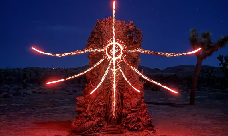 Сообщение содержало фотографию некой инсталляции посреди пустыни. Позже Кили поделился координатами, и неравнодушные игроки поспешили проверить, что же там такое. Прибыв на место, они обнаружили примечательную статую с резными фигурами, которая загорается ночью. После этого геймеры начали гадать, с чем она связана?