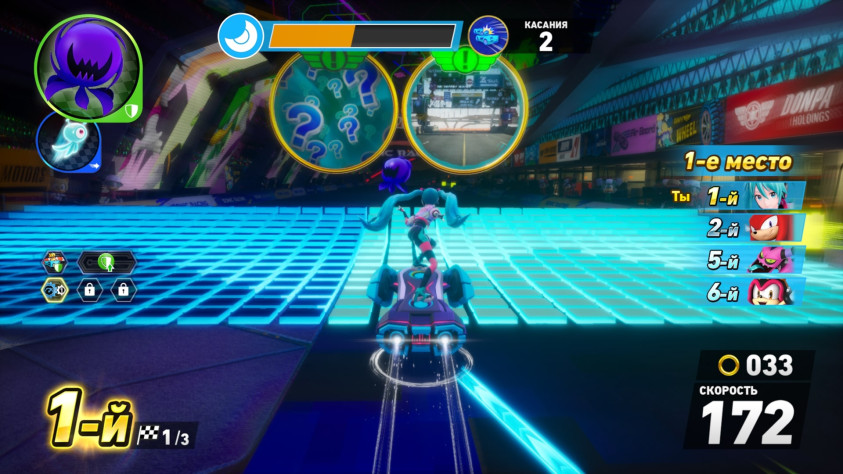 Устройств много, и здесь можно создавать сборки под разные стили игры. Если вы часто роняете кольца и теряете скорость, установите инструменты, которые будут красть кольца у оппонентов или увеличивать их запас при исполнении трюков. Если трёх уровней заряда во время дрифта недостаточно, сделайте так, чтобы появился четвёртый, и сократите время, которое затрачивается на его достижение. Если раздражают летящие в вас предметы, берите инструменты, с которыми машина быстрее восстанавливается после пропущенной атаки (особенно полезно в мультиплеере, где лидеров атакуют беспощадно). Многие из бонусов дают ощутимый эффект, но в то же время не кажутся слишком сильными и ломающими баланс.