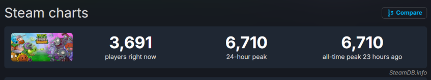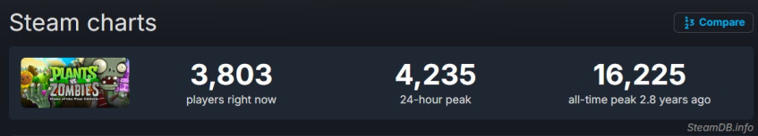 Показатели онлайна Plants vs. Zombies: Replanted.