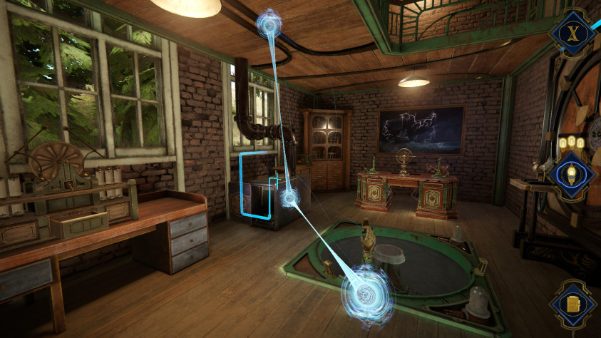 В The House of Da Vinci был особый инструмент — перчатка c линзой «Окули Темпус». Она позволяла заглядывать внутрь других устройств, видеть то, что человеческий глаз не видел, в том числе сцены из прошлого. В The House of Tesla тоже есть похожее изобретение, но связанное с электричеством, и называется оно просто «Прототип». Он визуализирует так называемые узлы электрического потенциала, а в определённых местах даже даёт возможность управлять током, соединяя одни приборы с другими и заставляя их работать. Правда, пользоваться этим инструментом приходится не так уж часто.