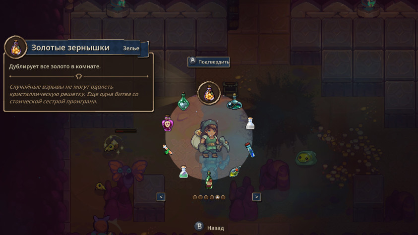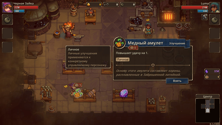 И раз уж до дома золото теперь не донести, вместо него на улучшения тратится специальная несгораемая валюта — короны, которые добываются после побед над боссами, а также фиолетовые камни для крафта по найденным чертежам. Всё это сильно ударяет по балансу и прогрессу, потому что заставляет гриндить одни и те же подземелья по несколько раз ради жалкой пары монет.